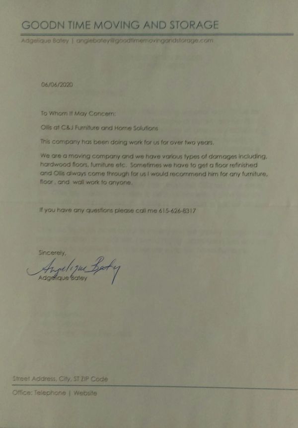 Nine years in the repair industry have taught me a lot, from 2012 to 2018 I oversaw the deluxe, inspection, and repairs to all "Restoration Hardware" furniture that was delivered in the Nashville market. I hold contracts with several moving companies in Nashville, I handle the furniture and minor home repairs that occur during moving jobs. For the repairs I don't do I have expierienced associates for that, so for whatever the job I'm pretty sure we can get it done.